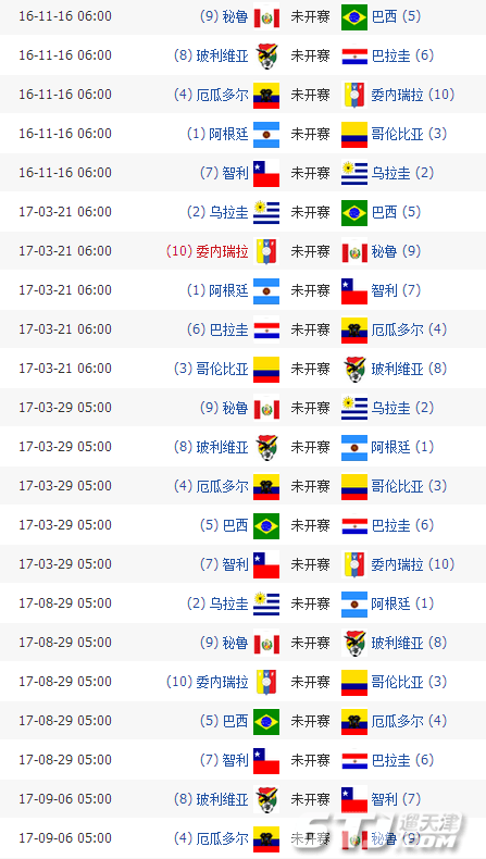 2026年世预赛南美区第17轮完整赛程
